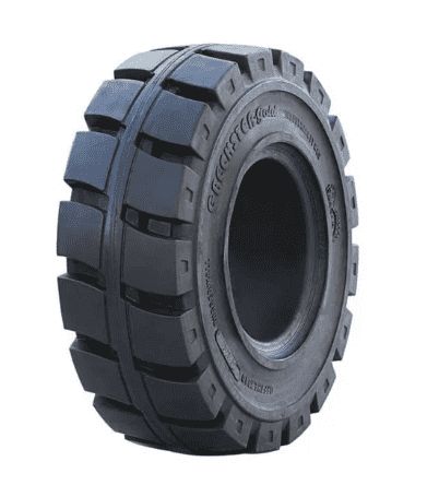 - Шины типа «суперэластик» разработаны для исключения бесполезных потерь времени вследствие проколов, разрывов шины и боковин. Эти шины по габаритным размерам, рисунку протектора и грузоподъёмности полностью взаимозаменяемы с пневматическими шинами. Они не требуют технического обслуживания в эксплуатации, имеют в разы больший срок эксплуатации, чем пневматические.